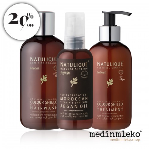 Ohranite intenzivnost svoje barve in lasem povrnite vitalnost. Set NATULIQUE Colour Shield je ustvarjen za zahtevno nego barvanih las, ki potrebujejo posebno zaščito pred izpiranjem barve, hkrati pa globinsko vlaženje z dragocenim arganovim oljem.