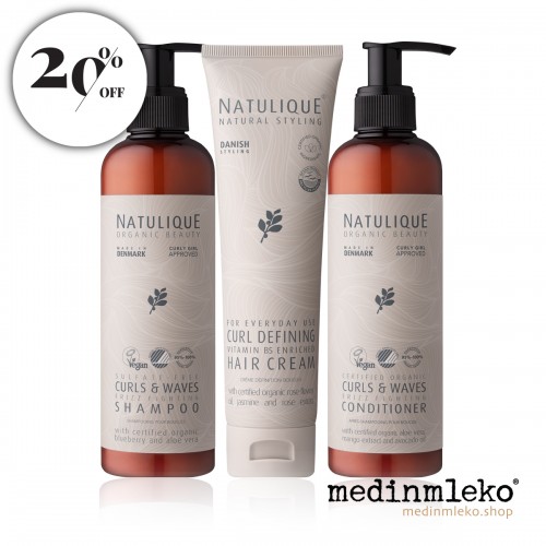 Set Natulique Curls and Waves je bil razvit z mislijo na edinstvene potrebe kodrastih las, ki so po naravi bolj nagnjeni k suhosti. Trio zagotavlja globinsko vlaženje, preprečuje krepast videz (frizz) in poudari naravno teksturo vaših las.